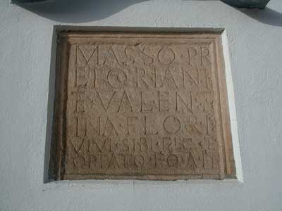 Links vom Eingang ist dieser Marmorstein eingemauert