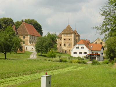Gesamtansicht des Schlosses Klaffenau, rechts hinten steht die alte Klaffmühle.