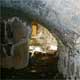man auf die ehemalige Burgkapelle mit Resten des Kreuzrippengewölbes