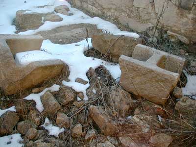 Steinerne Tröge liegen noch in den Mauern des alten Stallgebäudes.